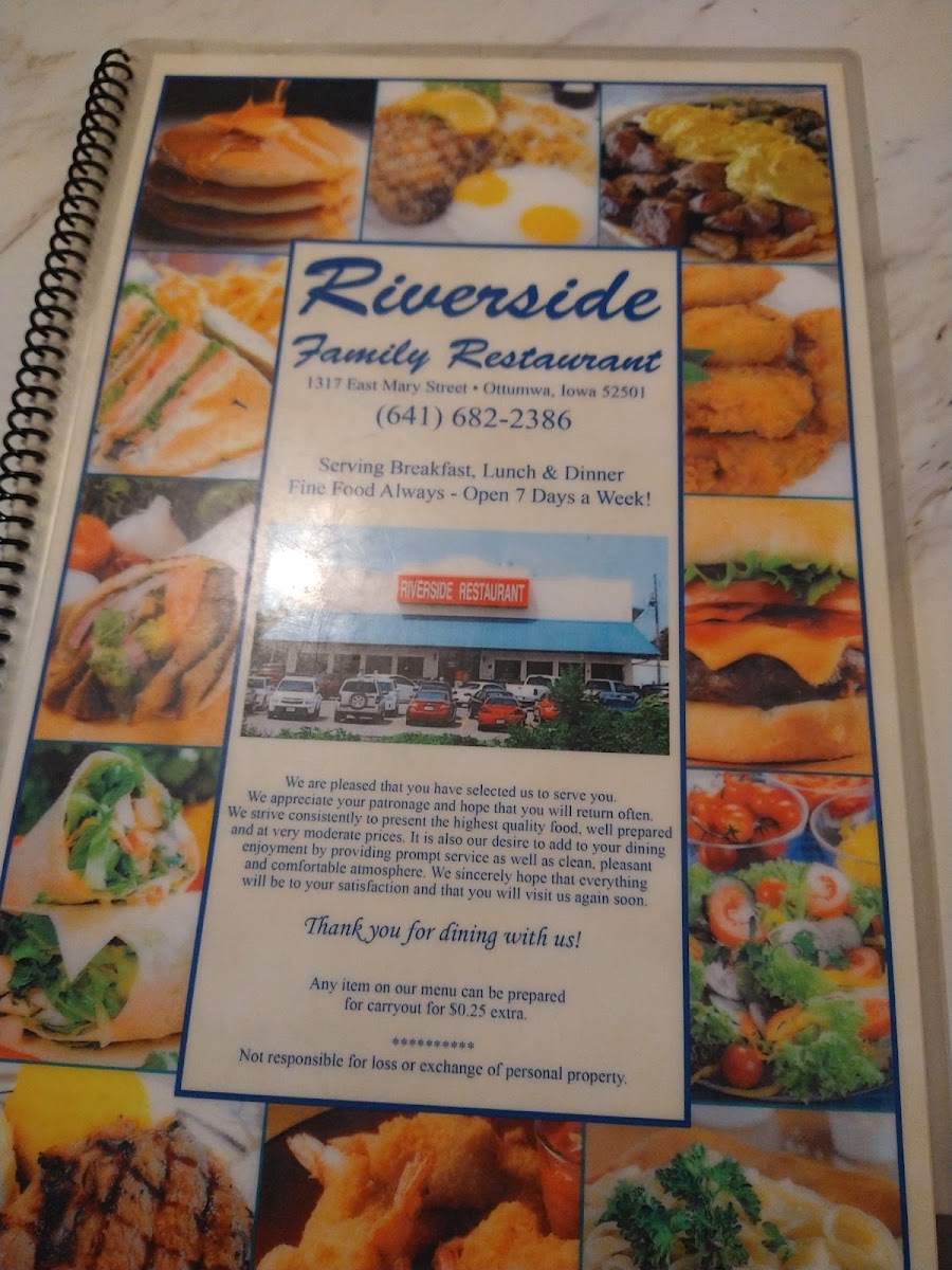If you find yourself in Ottumwa, stop by Riverside Family Restaurant. Good food, friendly service, and a cozy, homey atmosphere await you!